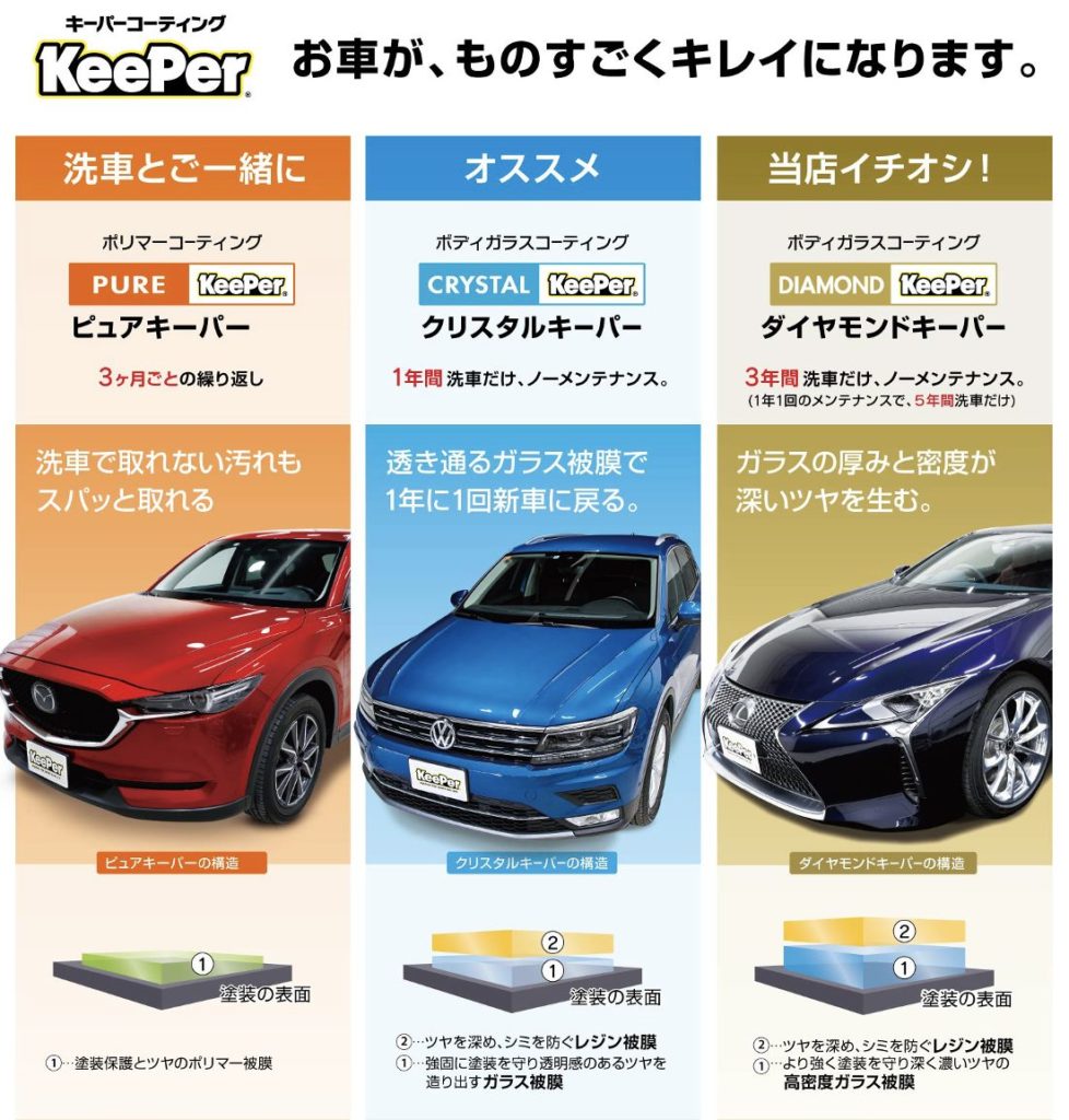 ビークルベースはメーカーから認定されたプロショップです。【ピュアキーパー】【クリスタルキーパー】【ダイアモンドキーパー】の施工はもちろん、ヘッドライトや樹脂フェンダーのコーティングも可能です。